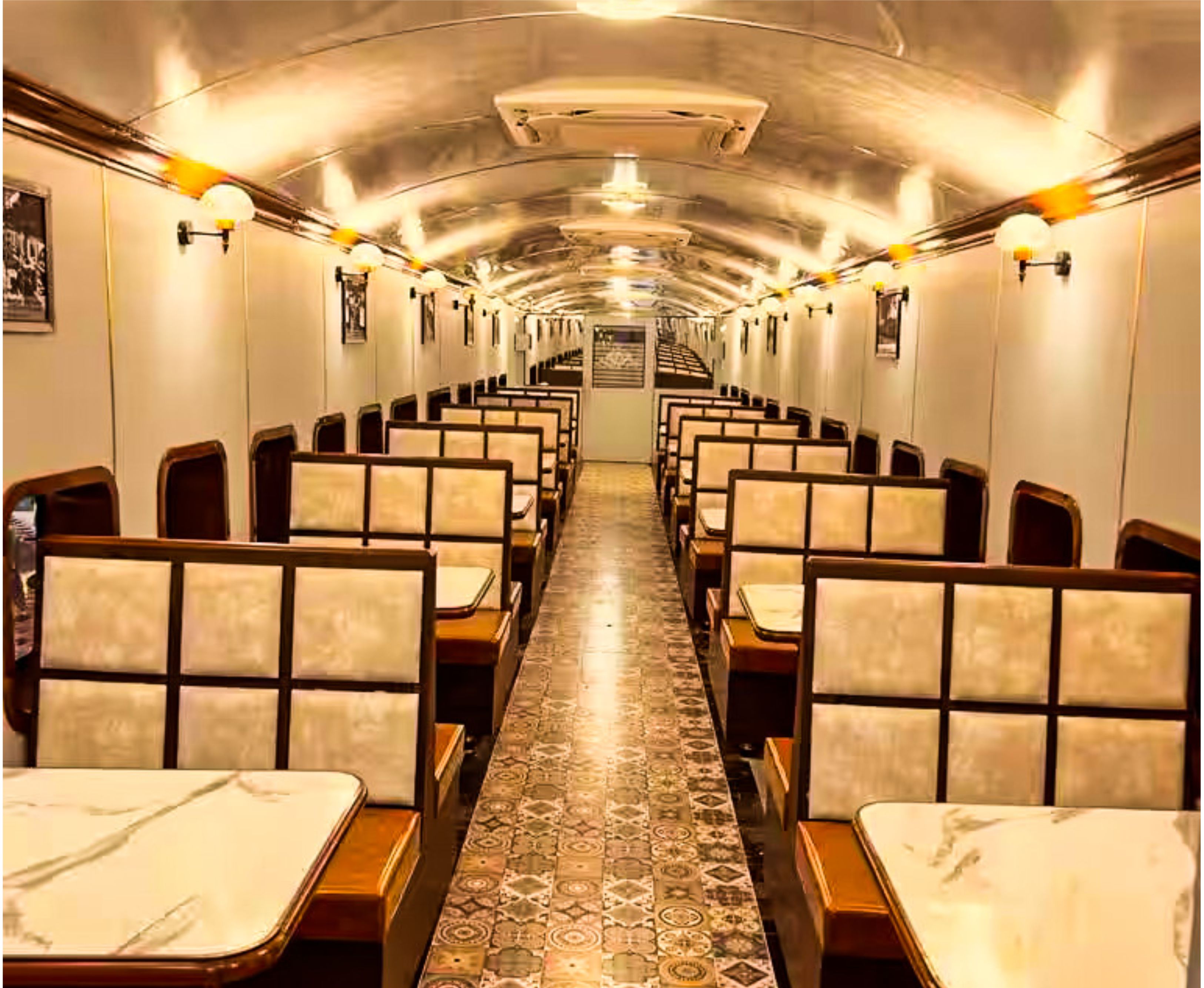 The concept revolves around the fusion of traditional elements with contemporary aesthetics, embracing the iconic imagery of vintage railway coaches while infusing the space with a fresh, innovative spirit. Imagine an environment where polished steel accents and clean lines harmonize with plush seating reminiscent of luxurious train compartments, creating an atmosphere that exudes both comfort and elegance.
